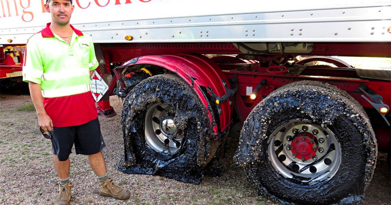 Una carretera se puso tan caliente, que el asfalto desde que estaba construida se derritió y causó el incidente, del cual no se reportaron lesionados.