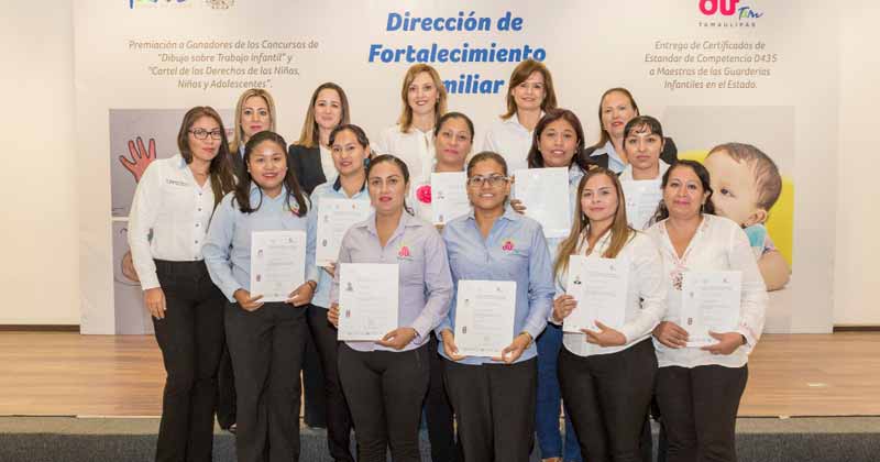La titular del DIF Tamaulipas Mariana Gómez entrega el aval oficial que garantiza el cumplimiento de las necesidades básicas, como la higiene, el sueño, el descanso y la alimentación