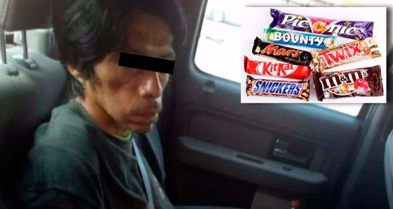 El sujeto fue detenido luego de que le fueran encontrada entre sus ropas dulces de diversas marcas