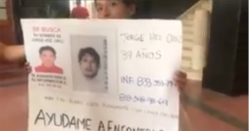 La señora María del Consuelo Cruz lleva 40 días buscando a su esposo desaparecido de nombre Jorge Hernández de 39 años.