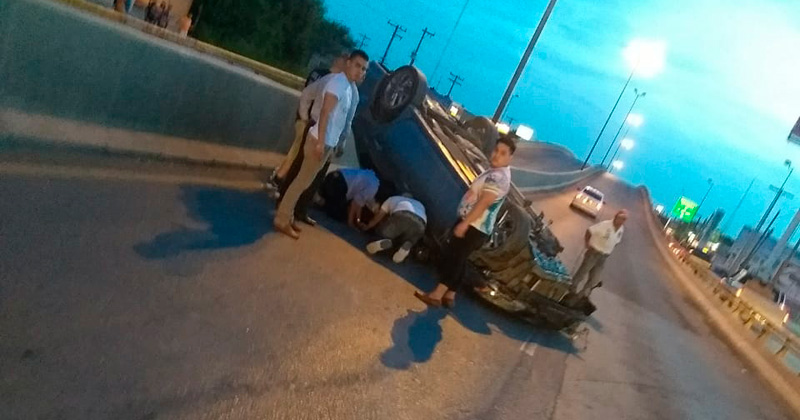 Mujer ‘maromea’ al perder control del volante de su automóvil, en el puente de la Avenida del Niño