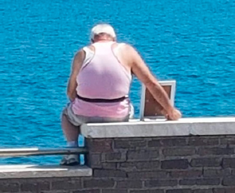 Conmueve anciano en la playa con fotografía de su esposa fallecida