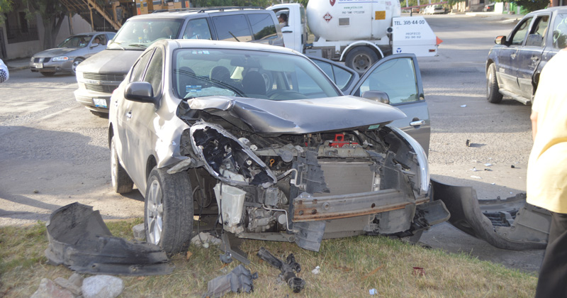 CIUDAD VICTORIA, Tamaulipas.- Al menos seis personas golpeadas y daños materiales en los 50 mil pesos dejó como saldo un fuerte accidente automovilístico, ocurrido ayer en la tarde en el 28 Berriozábal.