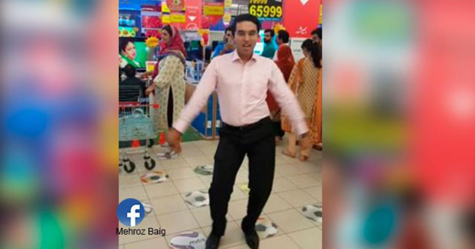 Hombre paquistaní baila en el supermercado