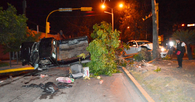 La imprudencia de un joven provoca que rebase límite de alto con su vehículo y se impacte contra una camioneta que terminó volcada en el 17 Matamoros; una pareja quedan heridos