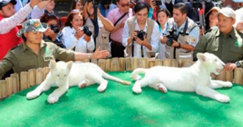 Es la primera vez que nacen leones blancos gemelos en un sitio público en México