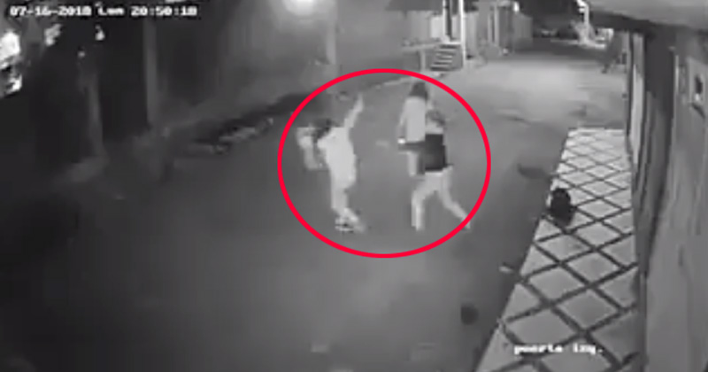 Se cae por ir viendo el celular y se desquita con su hija
