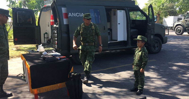 La Secretaría de la Defensa Nacional abrió sus puertas para que el pequeño Alexis, enfermo de leucemia, se enfundara el uniforme verde olivo y conociera de cerca lo que viven día a día los militares.