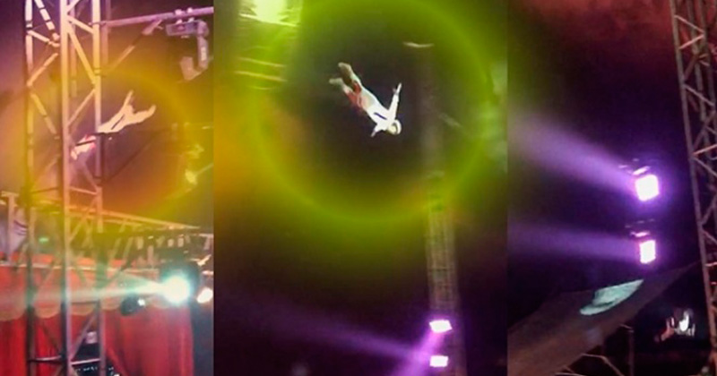 El acróbata cayó sobre un payaso, quien amortiguó el impacto y le salvó la vida