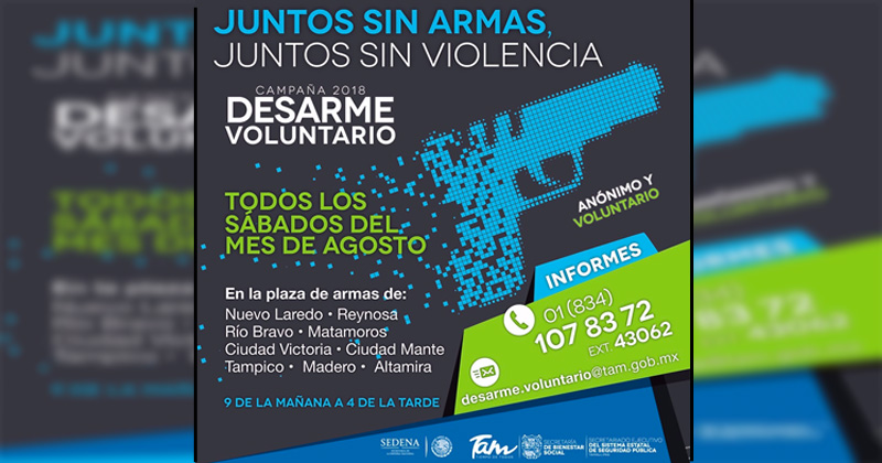 “Juntos sin armas, juntos sin violencia”, se pondrá en marcha todos los sábados durante el mes de agosto.