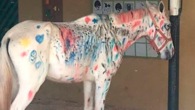 La polémica se creó después de que el caballo terminó así, aunque algunos aseveraron que al ser pintura de agua, el caballo no sufrió ni estrés