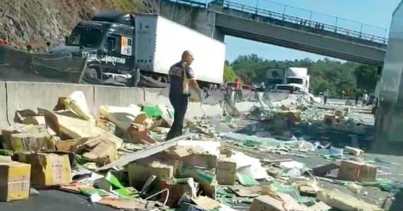 Vuelca tráiler con libros de texto en Veracruz y no hay rapiña