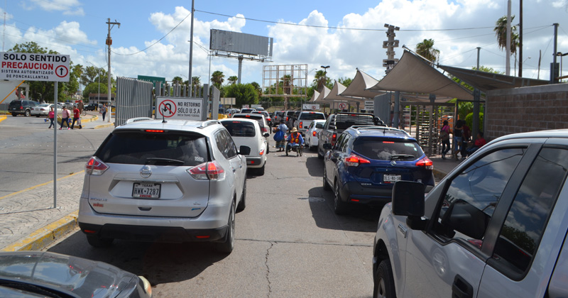 Los tiempos de espera en los cruces internacionales, tanto en las filas de vehículos como de peatones, siguen siendo prolongados, hasta por más de una hora, sobre todo, después del mediodía