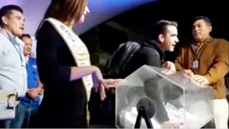 En la grabación viralizada en redes se observa cómo el joven introduce su boleto con la mano cerrada en la urna, para después volverlo a sacar.