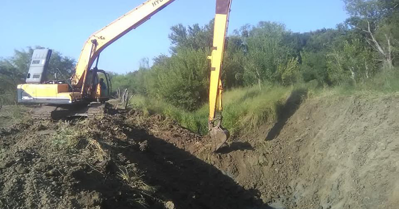 Utilizando maquinaria pesada del Modulo de Infraestructura Hidroagrícola San Fernando Sur, se inicio primero con la limpieza y retiro de maleza del cauce del río, que está impidiendo que corra el agua debido a que se encuentra lleno de maleza