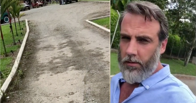 Según relata en la publicación se encontraba en grabaciones de una serie de televisión cuando en el pavimento dice haber visto la silueta del rostro divino.