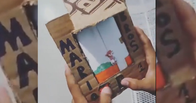 ¡Imaginación, sin límites! Niño crea juego de Mario Bros en caja de cartón