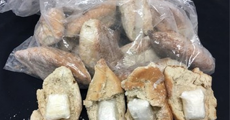 Los bolillos se encontraban en una caja de cartón, y dentro de ellos había cuatro envoltorios con cocaína.