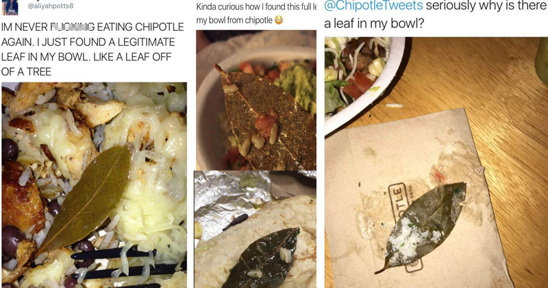 “No volveré a comer en Chipotle. Acabo de encontrar una hoja en mi plato, como la hoja de un árbol”