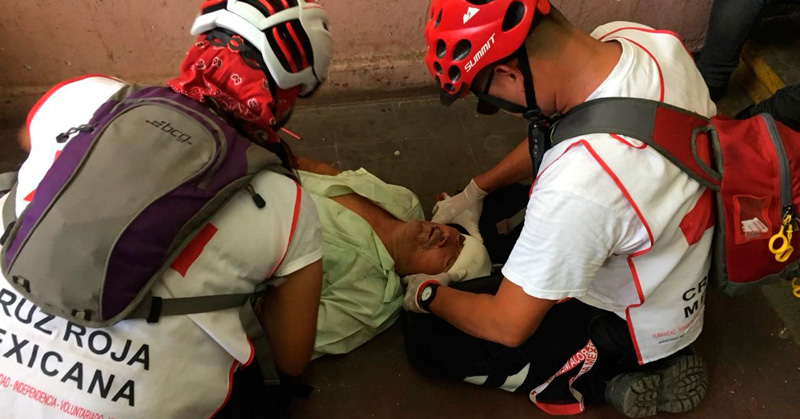 Un hombre de 70 años de edad pierde el equilibrio y sufre una aparatosa caída que le provoca fractura de cráneo y lo deja inconsciente.