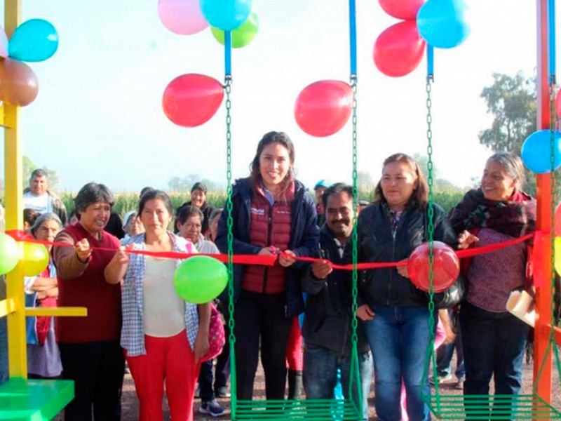 El paradero incluye dos columpios, una banca y una lámina con el nombre de la diputada de Morena