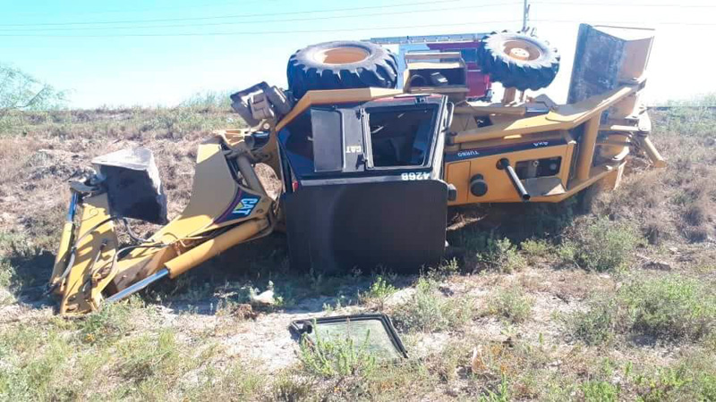CIUDAD VICTORIA, Tamaulipas.- El dormitar mientras manejaba un pesado trascavo por la carretera al puerto El Mezquital, le costó al vida al operador al maromear y morir instantáneamente aplastado por al cabina de la “mano de chango”.