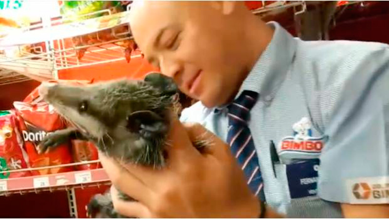 No todos son como los pintan: Repartidor de Bimbo rescata a tlacuache