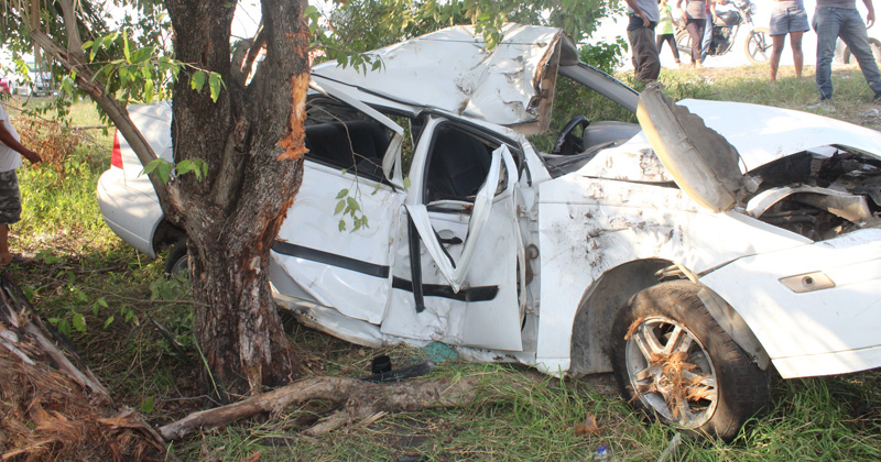 Se desplazaban a exceso de velocidad cuando pierden el control al pasar una alcantarilla y se estrellan con pared.