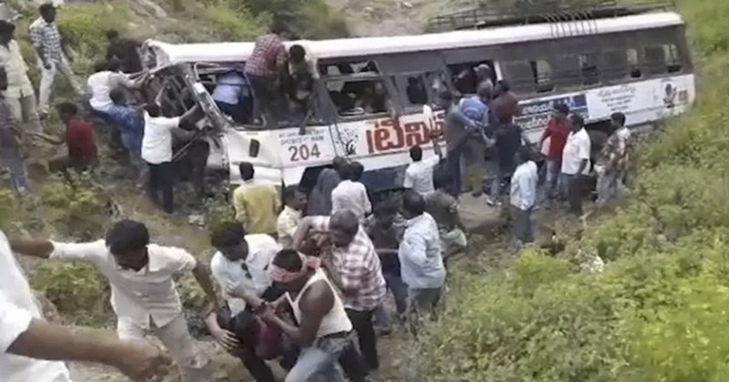 El autobús transportaba a peregrinos que volvían de un templo hindú, cuando se salió de la carretera en el distrito de Jagtial