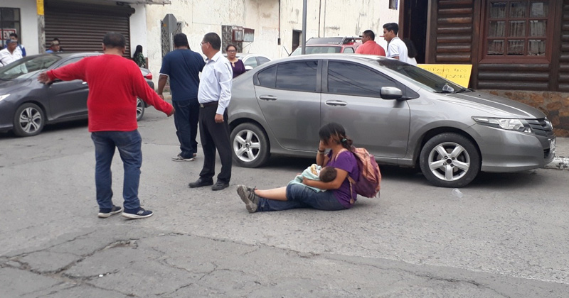La joven señora caminaba con sus dos menores hijos, uno cargado y el otro de la mano, cuando al tratar de cruzar el 18 Hidalgo fue atropellada por una camioneta de valores