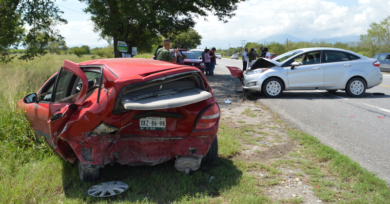 Tres personas resultan heridas en fuerte choque por alcance registrado en el kilómetro 11 de la carretera a Monterrey