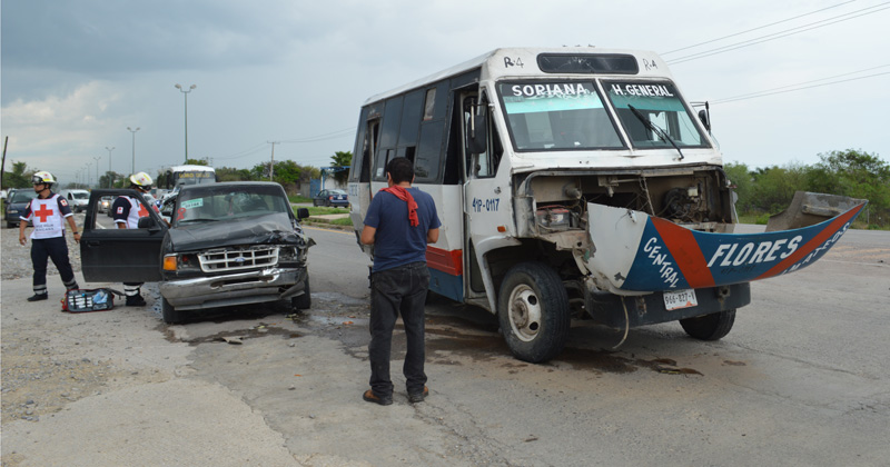La unidad de transporte iba lleno de pasaje, cuando se impacta contra una camioneta en el bulevar Emilio Portes Gil con calle Doblado