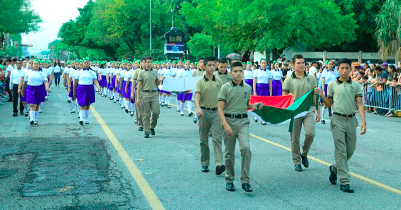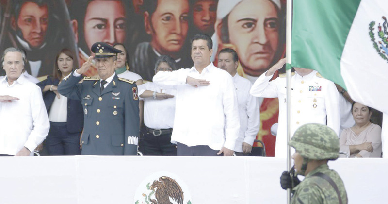 Encabeza el gobernador Francisco García Cabeza de Vaca el tradicional desfile cívico-militar donde participaron 45 contingentes; en guardia de honor, destacó la labor de las fuerzas armadas por preservar la paz y la soberanía nacional