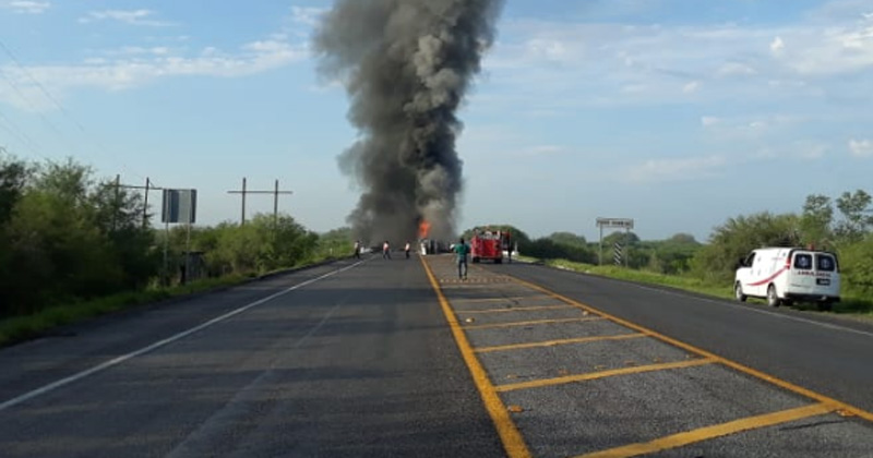 Pipa choca y se incendia en la carretera Victoria-Matamoros
