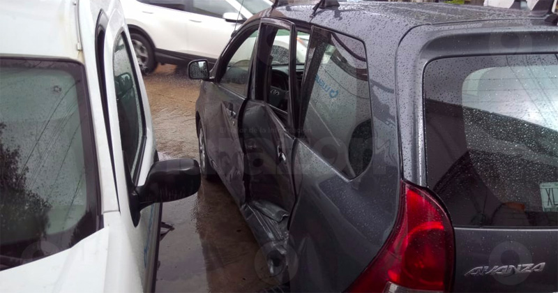 El choque de tres automóviles en la colonia Los Mangos, dejó como saldo cuantiosos daños materiales el mediodía de este jueves.