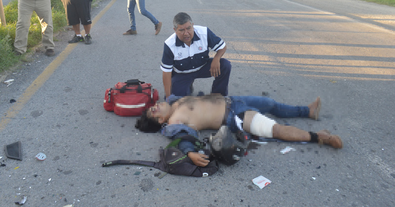 Estrella brutalmente su motocicleta contra un microbús que le dio un “cerrón”, en el libramiento Naciones Unidas