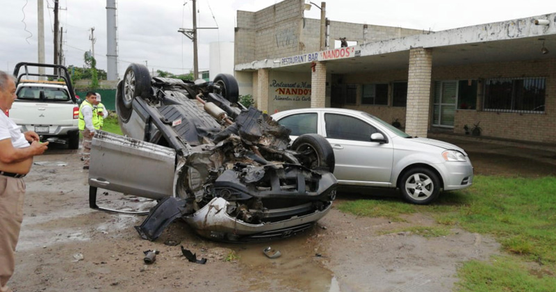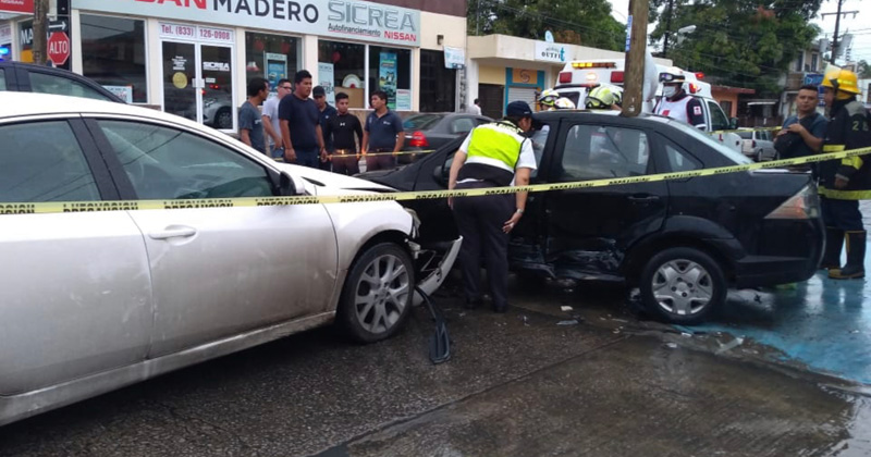 La mujer responsable fue impactada por otra unidad en calles de la zona centro de Ciudad Madero; paramédicos le brindaron los primeros auxilios.