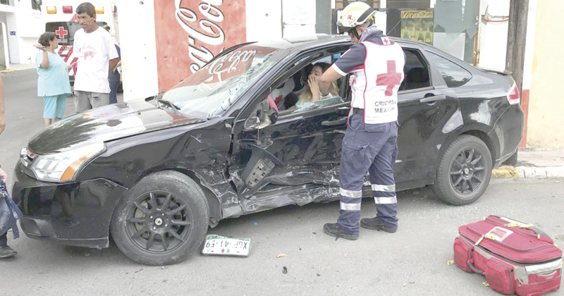 Su vehículo termina por estrellarse contra un negocio, luego de ser brutalmente impactada por una camioneta en el 13 Bravo