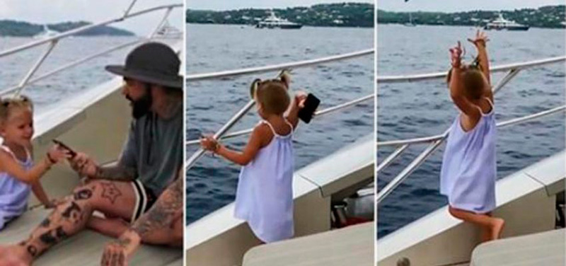 Sedienta de cariño paternal decide tirar al mar el smartphome papá para disfrutar de su tiempo juntos