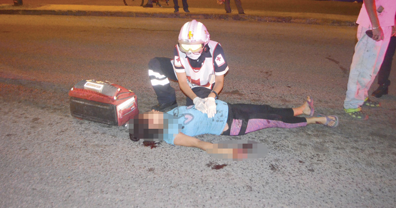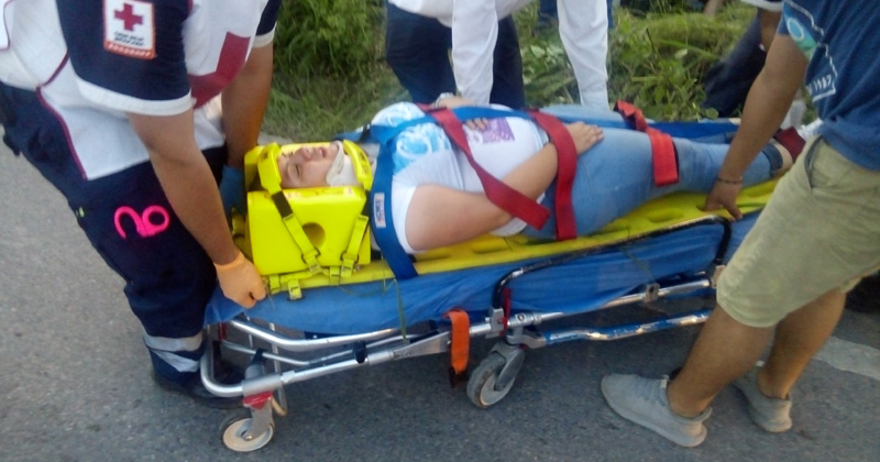 Una mujer embarazada viajaba con su pareja en una motocicleta, cuando pierde el control y derrapa a la altura de Soriana Tamatán; su estado de salud es delicado