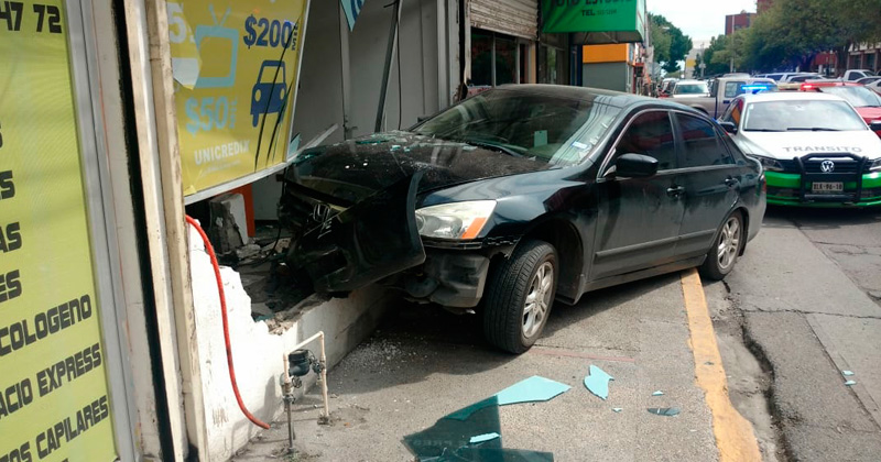 Una mujer pierde control de su automóvil y se sube a la banqueta para terminar adentro de un negocio en el 9 y 10 Matamoros
