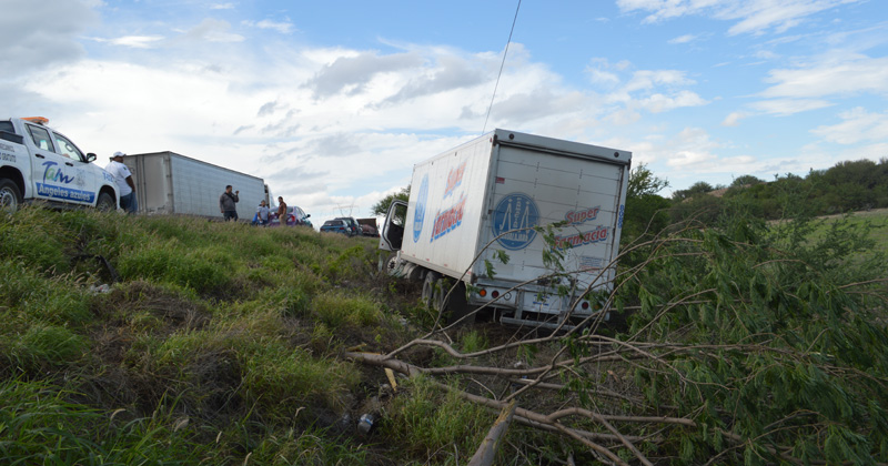 Los ocupantes de un camión se llevaron el susto de su vida al perder control de la unidad y salirse de la carretera a Zaragoza
