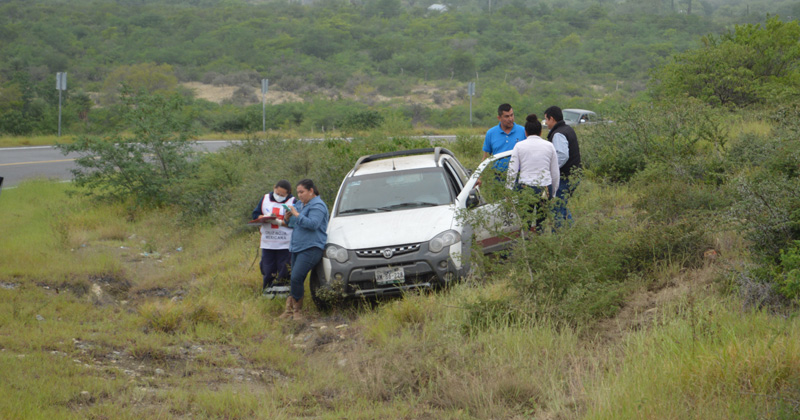 Empleada de gobierno se sale de la carretera en una curva debido a la velocidad y pavimento mojado. Pega con un talud y vuelca