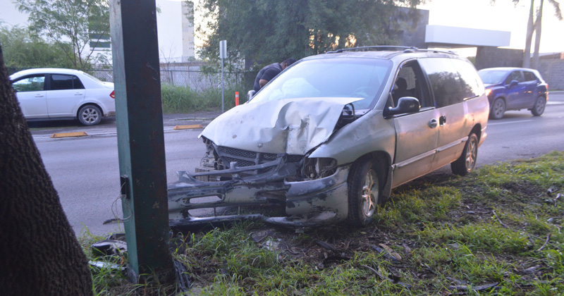 Mujer quedó internada en el hospital luego de estrellar brutalmente su camioneta contra una luminaria en el bulevar Fidel Velázquez con Olivia Ramírez