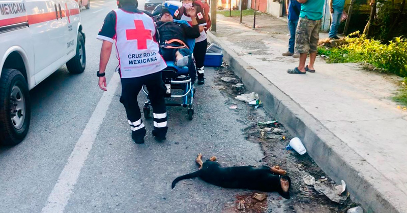 Arrolla a perro y derrapa moto