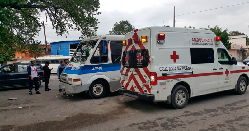 La unidad de transporte se impacta contra el costado de una camioneta que invadió carril, en el 13 bulevard Praxedis Balboa; tres usuarios quedan hospitalizados