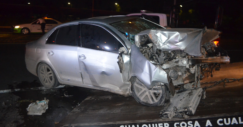 Los agentes de vialidad que llegaron para elaborar su informe, revelaron que la unidad involucrada, es un automóvil Volkswagen color gris, que estaba abandonado con la trompa destrozada.