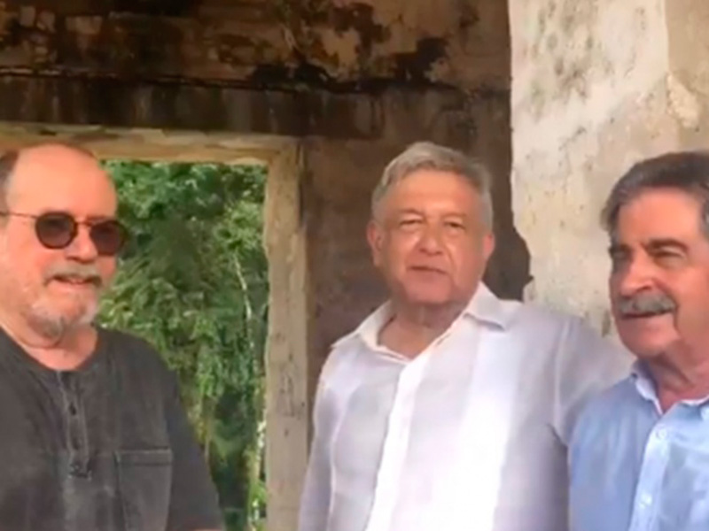 El presidente electo estuvo acompañado del cantautor cubano Silvio Rodríguez y del político y economista español Miguel Ángel Revilla