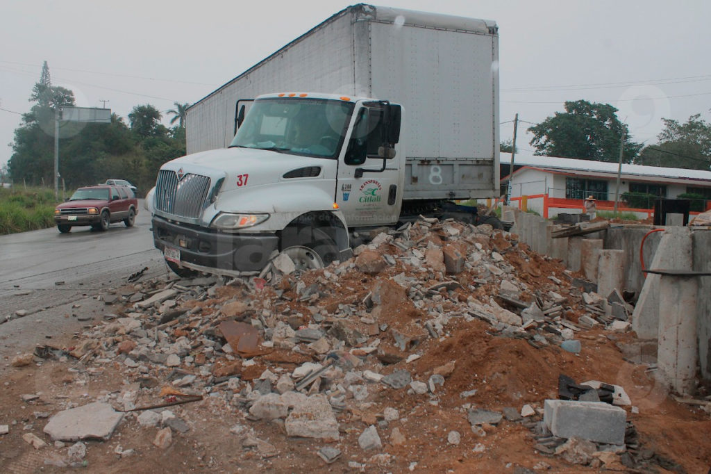 El trailer frenó su loca carrera gracias a un montículo de tierra y cascajo.