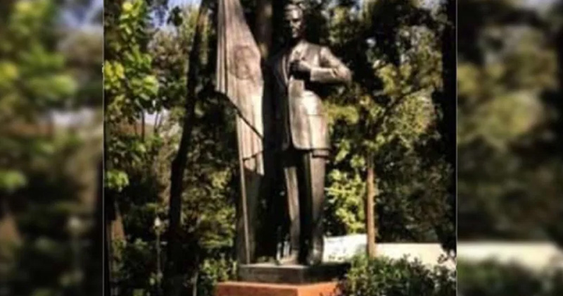 La estatua de bronce mide 2.20 metros de altura y pesa cerca de 200 kilográmos. Fue elaborada por Antonio Castellanos Basich